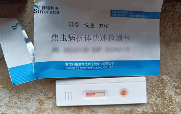 檢測項目:焦蟲、血蟲、傳胸肺。遼寧獸醫(yī)出診,一個母牛,兩側(cè)鼻翼發(fā)黃特別明顯,現(xiàn)場抽血檢測,結(jié)果顯示焦蟲陰性,血蟲和傳胸肺是陽性,混感,從圖片來看,主因應(yīng)該是傳胸肺,血蟲次之,已采取對應(yīng)治療措施。賽諾利康生物技術(shù)(北京)有限公司研發(fā)的膠體金快速檢測卡,依據(jù)膠體金免疫層析試驗(GICA)原理,完成抗原抗體的快速反應(yīng),操作方法簡單、快速、準(zhǔn)確率高,對人員、環(huán)境、設(shè)備等無要求,結(jié)果判斷一目了然,易于判斷,非常適合基層和現(xiàn)場進(jìn)行快速檢測。賽諾利康,品質(zhì)保證! |